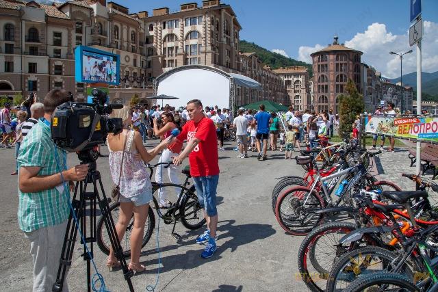 Главным событием фестиваля стал велопробег. Участникам, среди которых были именитые спортсмены, чиновники и даже священнослужители, предстояло преодолеть около 50 километров из центра Адлера в Красную Поляну. Маршрут проходил по новой совмещенной дороге.