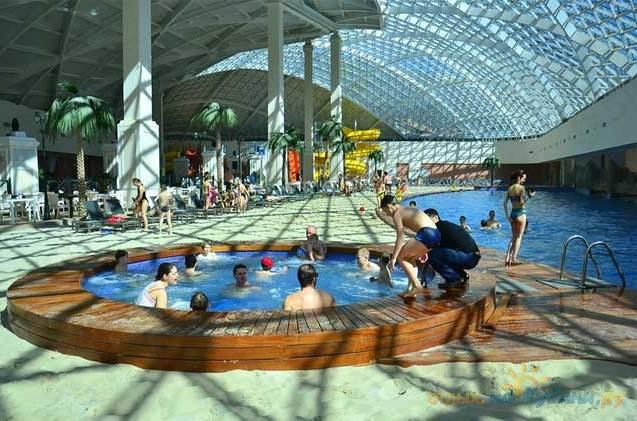 Также испытать массу положительных эмоций гости курорта могут в крытом эко-аквапарке с песчаным пляжем, расположенный на пятом уровне торгово-развлекательного центра.