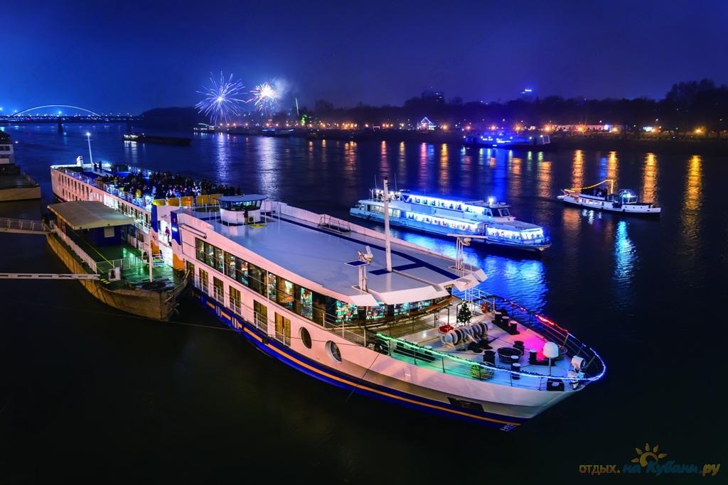 И вдруг с бездонного неба, подсвеченного яркой луной, начинают медленно падать разласписто-пушистые белые хлопья. Снежинки искрились в лучах фонарей, падали и воду и тут же таяли. Снег! На мгновение все разговоры утихли, но тут же возобновились с утроенной силой. Как все были рады этому неожиданному для юга подарку зимы. Незнакомцы тут же принялись подплывать и, чокаясь, поздравлять всех с праздником. Снег объединил нас.