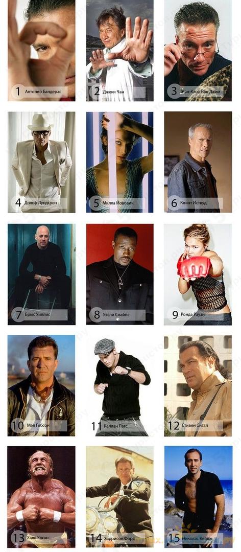 Что делать? Мы предлагаем 15 фото актеров. Среди них есть те, которые хотели сняться в третьей части "Неудержимых", но не смогли. А также есть и те, кто все-таки смог получить роль в фильме. Нужно выбрать семь звезд, которые снялись в фильме. Выписать их номера и отправить сообщение на почту editor@nakubani.ru.