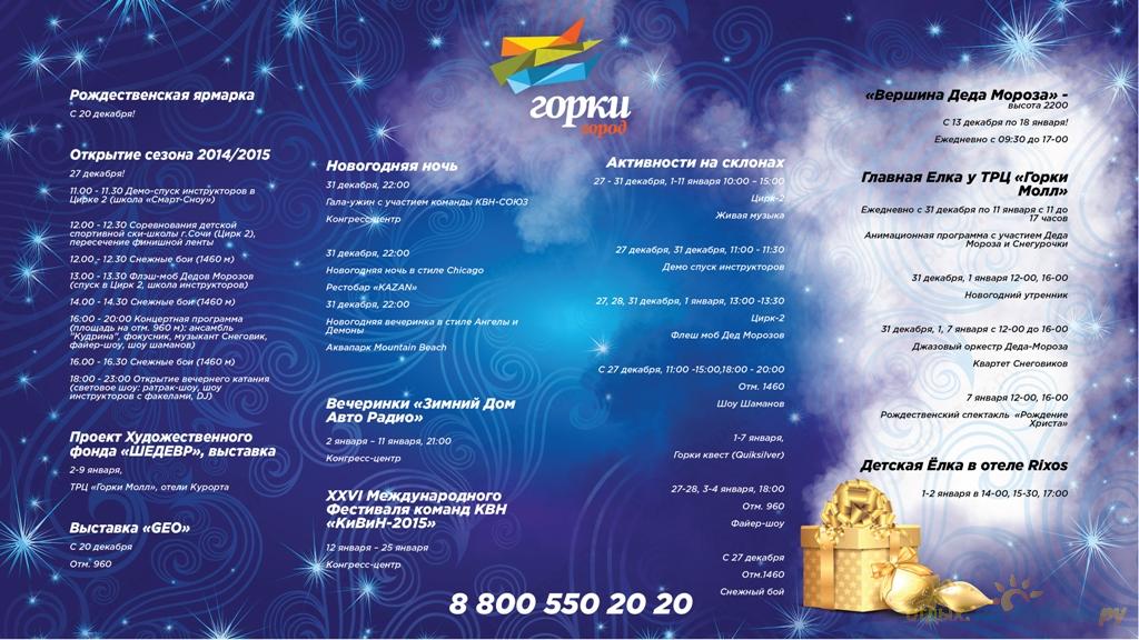 27 декабря – впервые после Зимних Олимпийских Игр Сочи 2014 – всесезонный горный курорт "Горки Город" откроет зимний сезон 2014/2015.